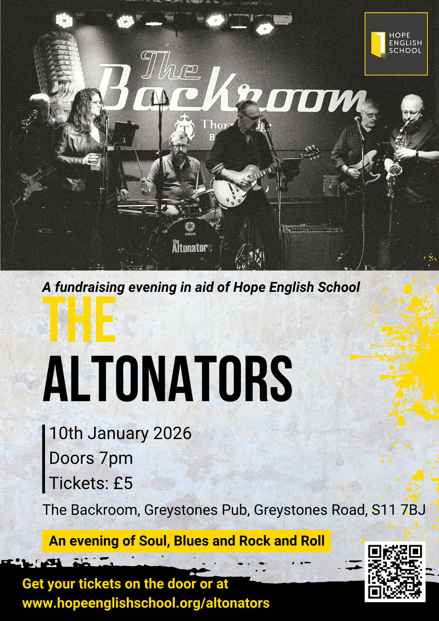 Blast away the January blues (and have something in the diary to look forward to!) and come to enjoy some fantastic live music from the fun and friendly band: The Altonators. A mix of different styles (mainly covers!) to get you on your feet, The Altonators are a great, local band and every penny of the ticket price will go directly to our work! Held at the iconic venue ‘The Backroom’ at the Greystones Pub in Sheffield, this is an event not to be missed!